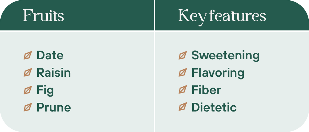 Our dried-fruit Juice Concentrates and Purees offer a compelling proposition, combining flavor intensity, nutritional value, consistency and versatility.
